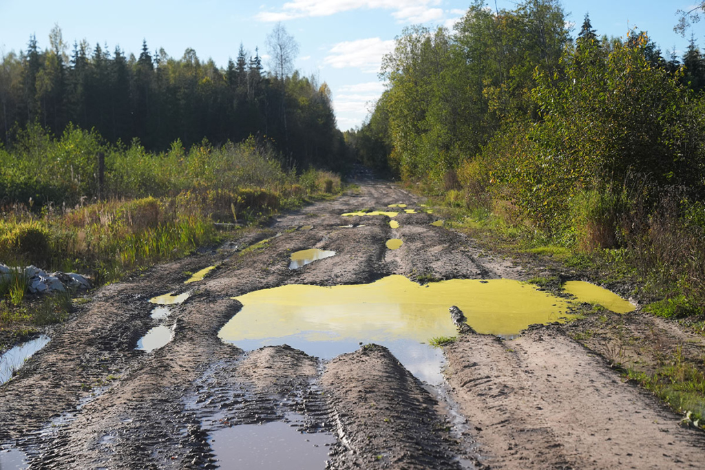 Захоронение мирных женщин найдено совсем рядом с древним монастырем, который, можно сказать, отрезан от мира огромными болотами и непроходимыми лесами. Добраться до него можно только зимой, когда болото подмерзает, в остальное время – только на спецтехнике. Сейчас, осенью, дорога к обители совсем раскисла, поэтому иеромонах Макарий (Тягловский) встречает нас с фотографом в поселке Обуховец на болотоходе.