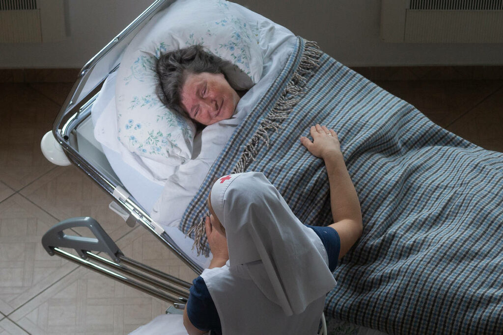 «Когда кому-нибудь в богадельне плохо, не очень хорошо себя чувствует, мы просим Леночку Львовну помолиться. Молимся с ней вместе. Я стала замечать, что она правой рукой двигает, сбивает одеяло, я его все поправляю. А потом поняла, что Леночка так крестится», – говорит сестра Елена.