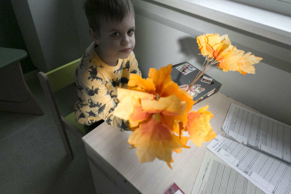 Пока Демид сидит за отдельным столиком, чуть в стороне от других детей, которые собираются на ковре в кружок. Он присоединяется к ним в последний момент, когда начинается общее занятие. Сидит недолго, послушает, понаблюдает и вместе с тьютором уходит гулять по детскому саду, просто чтобы пройтись, побыть немного в одиночестве, чтобы потом вернуться к следующему занятию.
