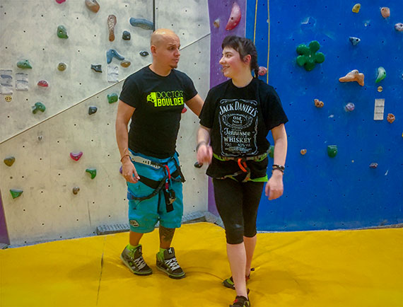 Недостатка в учениках, которые платят ему за услуги инструктора, у Максима Семенова нет. Поэтому с Лерой и другими детьми и взрослыми, возможности которых принято считать ограниченными, он занимается бесплатно. Вход в клуб придется оплатить, но это не огромные деньги. Бесплатные скалодромы существуют только при общественных организациях. Там хорошо. Но здесь – совсем другое. И в смысле ресурсов для развития, и в смысле атмосферы, которая создается приходящими сюда современными активными людьми.