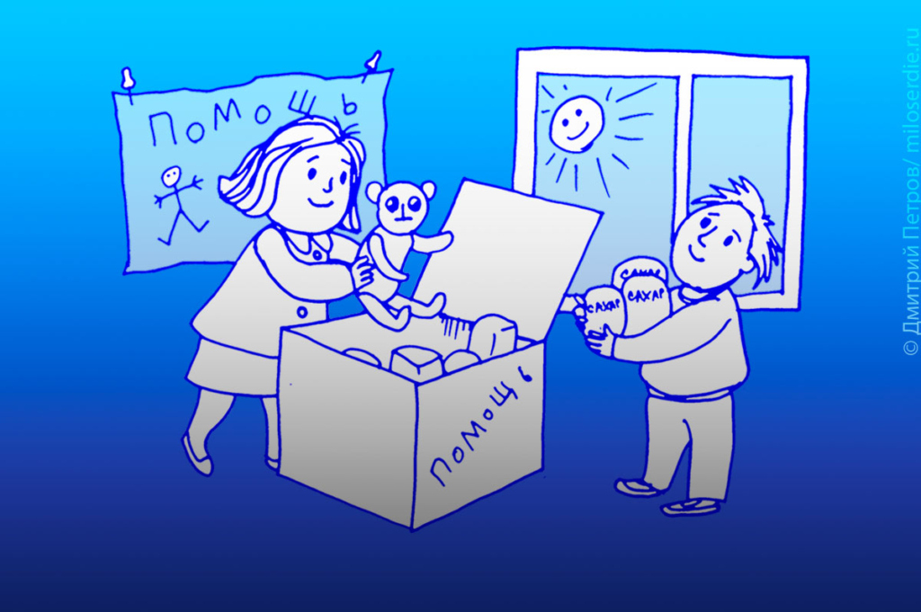 Теперь Ирина и Савва покупают крупу, сахар и мыло и относят их в благотворительный фонд, который помогает бездомным. Мальчик сам дома складывает продукты в коробки. Теперь он знает, для кого все это собирают, и радуется, что может принять в этом участие.