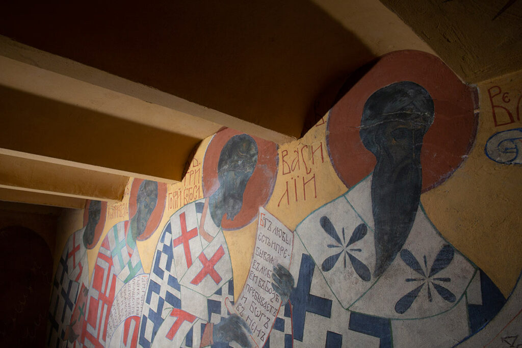 На северной стене изображены ангелы и лоно Авраамово, выполненные Кориным в стилизации новгородской живописи XIV века.