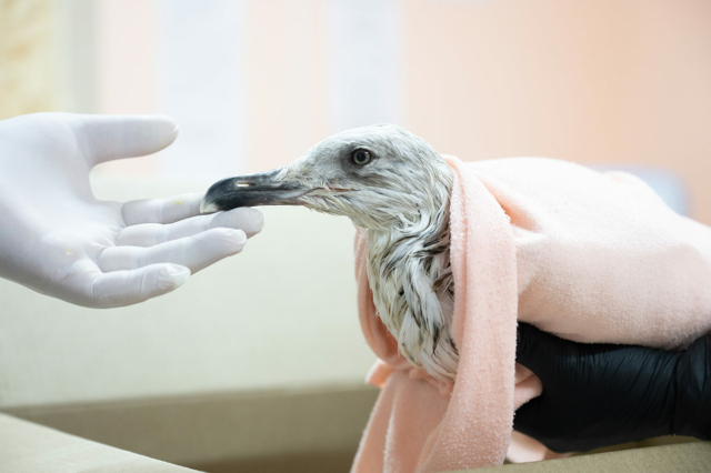 Полчаса назад Мира привезла на своей машине коробку с подобранной замазученной птицей. Она очень быстро, резко и уверенно передвигалась по штабу, собирая необходимое. Ветошь. Салфетки…. А когда врач стал ставить птице зонд и вливать шприцем физраствор, неожиданно испугалась: