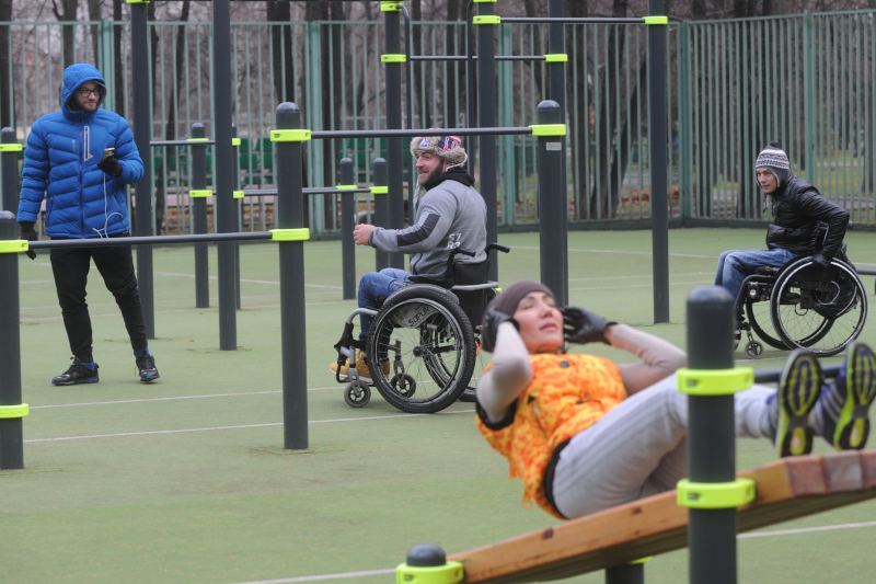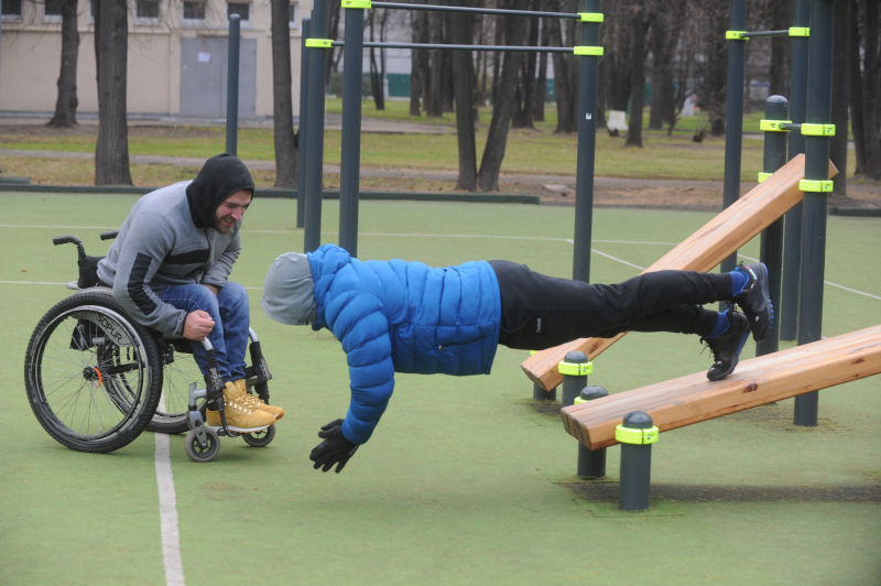 Правда, на улице добиться «широкого оборудования» площадки сложно – штанги без присмотра не оставишь. Но просторная площадка, обеспеченная турниками самой различной высоты, необходима. В Москве и области площадок, готовых для профессиональных тренировок, пока всего четыре. В Лужниках, на Поклонной горе, в парке «Фестивальный» в районе Марьиной рощи и в Одинцово – в парке имени Лазутина. Оборудование адаптировано. Колясочники могут подъехать к брусьям, ширина позволяет; есть специальные скобы, по которым с помощью рук можно забраться на турник.