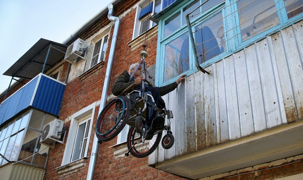 Вы, может, думали, что 61-летний инвалид выходит из своей квартиры и возвращается в нее по воздуху ради развлечения? Тогда попробуйте спуститься или подняться на третий этаж по узкой лестнице на инвалидной коляске – вот где настоящий экстрим. Пандус, специальный лифт? О чем вы говорите…