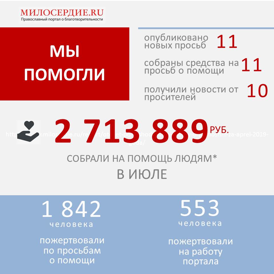 Спасибо за помощь в августе 2019 года! И просим молитв о наших жертвователях!Анастасия МАРКИНА03.09.2019 Ссылка скопирована! Статьи/События * портал Милосердие.ru – один из 26 проектов службы помощи Милосердие https://www.miloserdie.ru/report/otchet-po-rashodam-na-prosby-o-pomoshhi-za-iyul-2019-goda/ Читать еще Темы Вера Законы История Колонки Кто есть кто Личный опыт Медицина Ноу-хау Общество Отдых Семья События Все статьиРассылкаСвежие новости и лучшие статьи в вашем почтовом ящике Укажите email в формате your@email.com Подписаться Отправляя форму, я даю согласие на обработку персональных данных