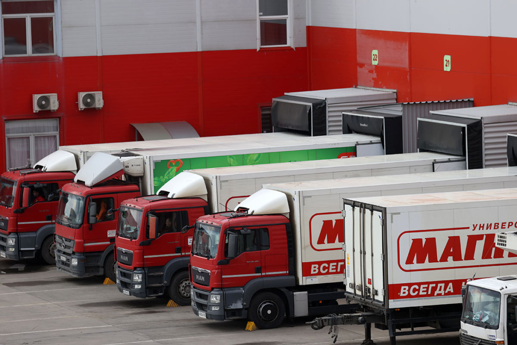Россия. Краснодар. Грузовые автомобили около здания распределительного центра сети магазинов «Магнит». Фото: Дмитрий Феоктистов/ТАСС