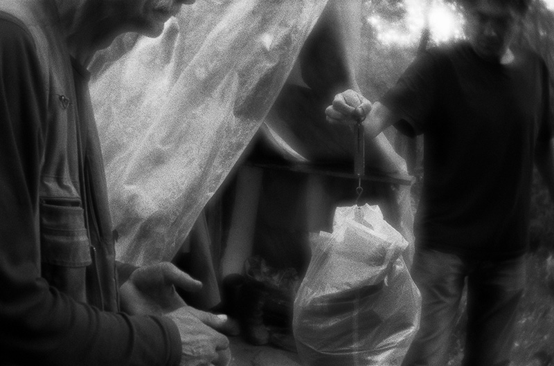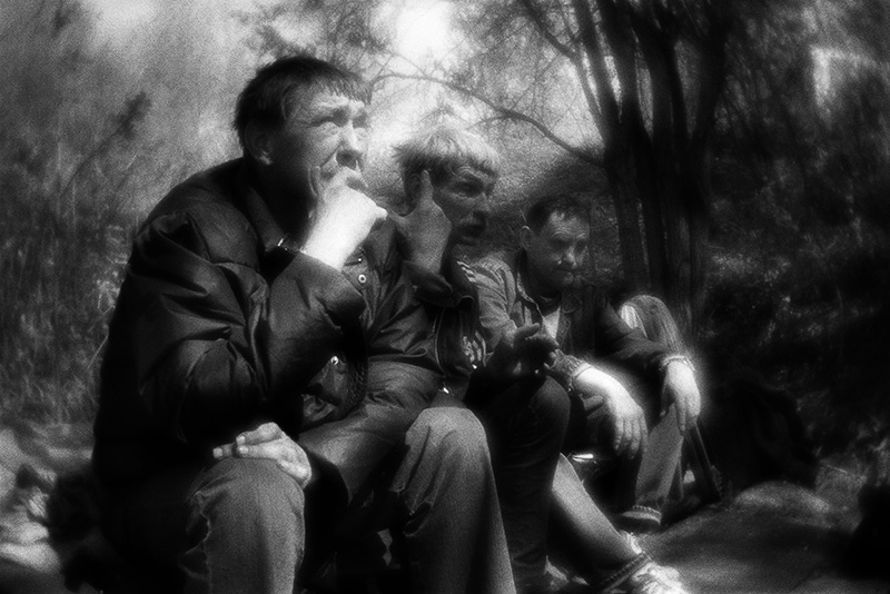 По словам фотографа, сначала жильцы лагеря относились к нему настороженно, но постепенно привыкли. «Бездомные фаталистично относятся ко всему происходящему, живут одним днем. Я пытался помогать им – приносил одежду, еду, но так как они не ждут этого, то воспринимают это очень спокойно».