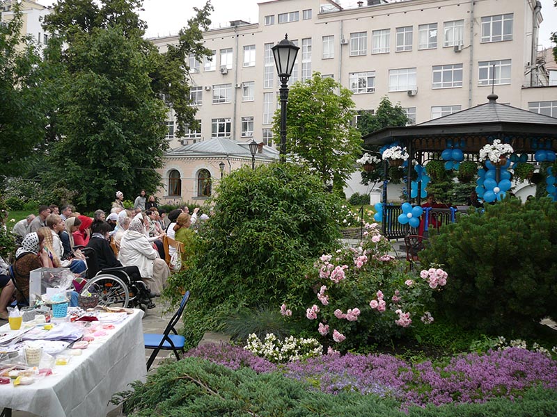 Сейчас в службе помощи больным БАС больше ста пациентов с диагнозом БАС. Летом многих из них родные стараются вывезти из Москвы – за городом им полегче дышать. Но все же на Литургию в Марфо-Мариинскую обитель некоторые приехали. И еще приехали родственники больных – им поддержка, в том числе и молитвенная, нужна не меньше, чем самим больным. Встреча в Обители впервые прошла в рамках мероприятий Международного альянса организаций, которые помогают больным БАС.