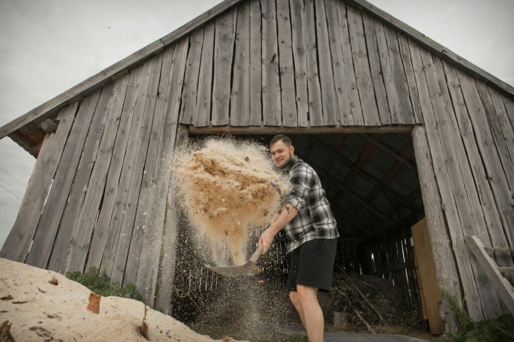 «Тут такие закаты! Вчера луна была оранжевого цвета, между деревьями повисла, и облако такое темное заходило, умел бы рисовать – зарисовал бы», – с Ильей мы разговариваем на строительстве пчелохранилища. Копают яму под фундамент здания, куда на зиму будут ставить ульи.