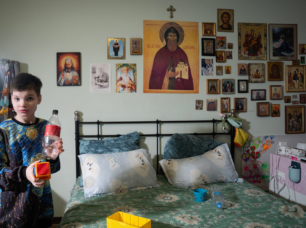 Света заглядывает в спальню, а там уже проснулся Семен. Он сидит на кровати в уютной мохнатой пижаме с Тоторо. В комнате прохладно, потому что Сема не выносит духоту, поскольку она может спровоцировать эпиприступ. Всю ночь приходится Свете то открывать, то закрывать форточку. В комнате на одной стене целая выставка фото наличников (помимо того, что Светлана преподаватель русского языка и литературы, писательница и блогер, она работает еще и в музее деревянного зодчества имени Грошева заведующей литературной частью), портреты членов семьи, гирлянда-фонарик, на противоположной стене – огромное количество икон.
