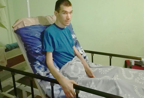 Сергей рассказал, что уже умеет сам принимать пищу: «У нас своя технология. Жена Катя привязывает к руке ложку, и я так могу есть, несмотря на спастику. Суп зачерпнуть, конечно, не получается, а вот каша улетает».