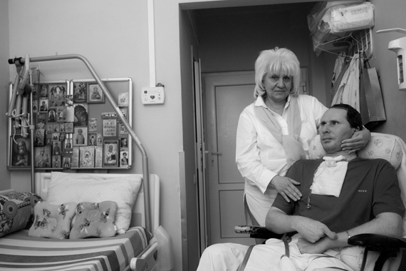 После выписки он поехал не домой, а в другую московскую больницу – Федеральный Медицинский Биофизический Центр имени А.И. Бурназяна. В этой клинике Володя в общей сложности пролежал четыре года. Именно здесь, в ФМБЦ, у него и появилась сиделка – человек, который круглосуточно ухаживает за Володей, не отходит от него ни на шаг. Почему? Диагнозы Володи: посттравматическая энцефалопатия, спастический тетрапарез, парез надгортанника. Питается он через гастроному, дышит — через трахеостому. Кроме кормления через гастростому (5 раз в день), в обязанности сиделки входит гигиенический уход, физические и логопедические занятия, электромассаж, чтение вслух, прогулки на свежем воздухе.