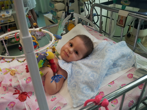 С ноября 2011 года малыш находится в детской больнице им. Сперанского, без аппарата ИВЛ мальчик не может дышать. В первое время, вспоминает с содроганием Елена, Саша все время плакал, звал маму, очень похудел. А сейчас – немножко привык, знает, что мама по вечерам уходит и ему надо поскорей заснуть, чтобы снова ее увидеть. Освоился, начал поправляться. «Сейчас мой Саня весит 9 кг и у нас целых 13 зубов! — с гордостью говорит Лена, — сынок знает уже всех медсестер, и они к нему тоже привыкли. Саша — очень улыбчивый мальчуган, любит смотреть мультики и читать книжки. Помню, когда еще были дома, он очень любил плавать в ванной, и я мечтаю, что когда мы с ним будем дома, обязательно продолжим наши водные процедуры, он будет этому очень рад!»