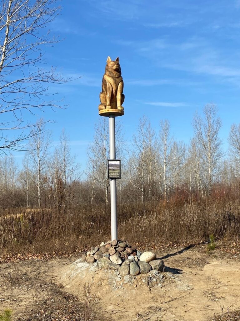 Так прошло 13 лет, а в январе прошлого года от старости умер сам Мишка. Местные жители настолько прониклись его историей, что решили поставить памятник: возле поворота на деревню Шестакова появились деревянная скульптура собаки и табличка с трогательным стихотворением.