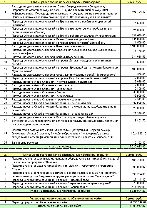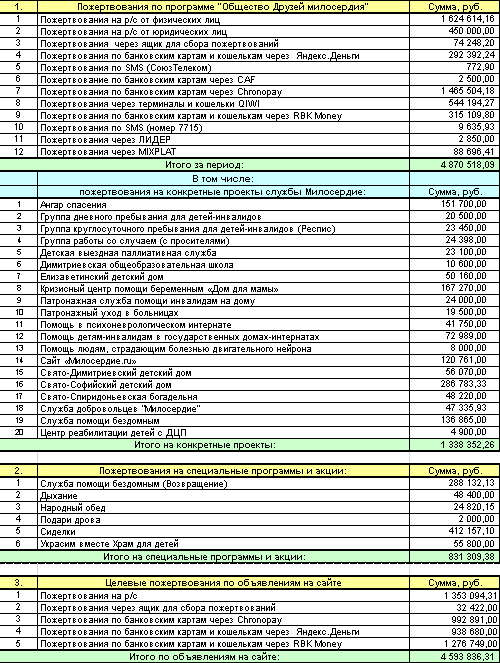 Детализация поступлений пожертвований по банковским картам через сайт (в формате PDF)